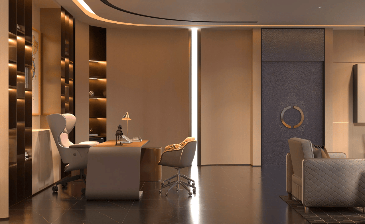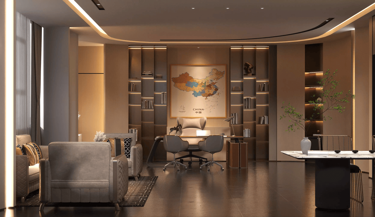 董事长办公室的空间结构应充实考虑适用性取美妙性。办公室的设想需要满脚日常工做的需求,可以或许为董事长供给优良的工做体验。如合适人体工程学的办公椅和宽敞的书桌,高档的木材、大理石、玻璃等材料可以或许传送出一种奢华而不失稳沉的感受。更是展现企业文化和小我档次的空间。如会议、欢迎等功能。
