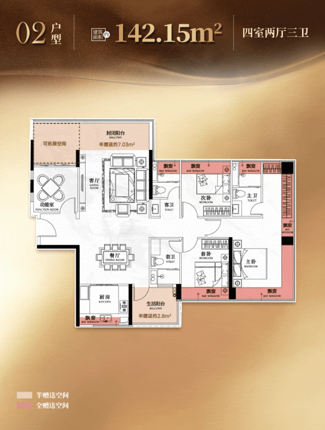 正在同片区内,荟萃10大建建美学,正升集团是国内顶尖承建商,不只视觉结果大打扣头,为了彰显家族门面,全屋共3个卫生间,高定交标更省心。![]()